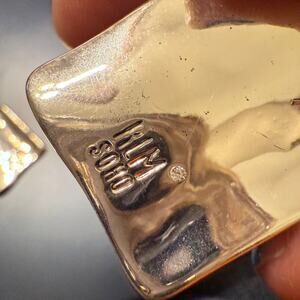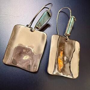 This is a pair of silver tone metal drop earrings with "mosaic" turquoise stone by Robert Lee Morris SOHO. They are in strong preloved condition and measure 2.5" x 1".