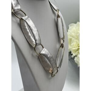 Robert Lee Morris Soho Designer Statement Necklace Hammered Silver Oval Links