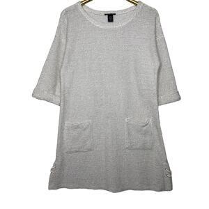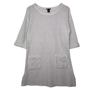 Robert Lewis Size Medium Ivory Chunky Knit Swim Cover Dress Beach Lace Up Sides