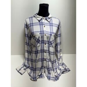 Robert Louis 2X Button Front Shirt Plus Size Lavender Plaid Roll Tab