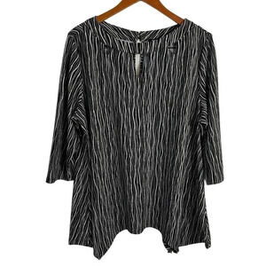 Robert Louis Black and White Blouse XL Keyhole Cutout Neckline Sharkbite Hem Stretch Pullover 3/4 Sleeves Round Neckline