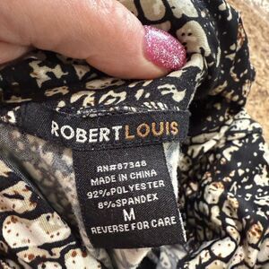 Robert Louis black and brown snake print skirt, size medium. The material is 92% polyester and 8% spandex. Measurements are shown in the pictures. This skirt is suitable for office workwear or business attire. #snakeskin #workwear #businesscasual