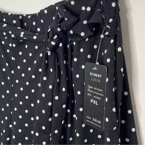 Robert Louis black and white polka dot shorts. Petite sized shorts, attached tie belt at waist, side pockets. New with tags.