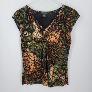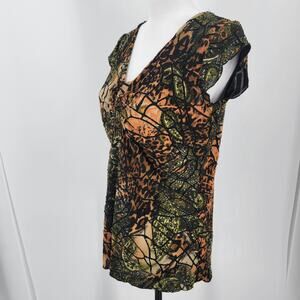 Robert Louis Blouse Womens Small V Neck Abstract Print Y2K Grunge. See Photos for Approximate Measurements.