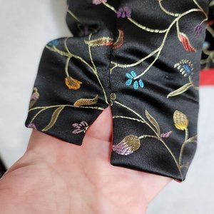 Robert Louis Lined Black Metallic Floral Silk Blend Open Front Jacket Size M/L.