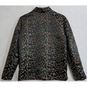 Robert Louis Lined Black Metallic Floral Silk Blend Open Front Jacket Size M/L