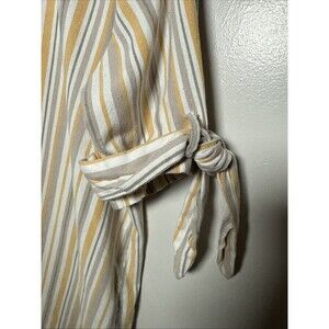 Robert Louis Linen Blend Shirt Dress Yellow Tan Stripes Women's Size 3X