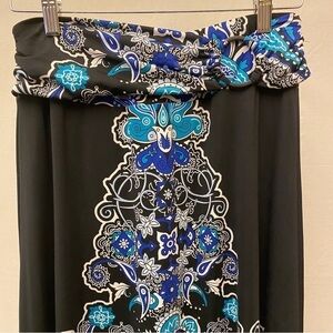 Robert Louis Petite Small Long Flowy Maxi Skirt Black W/ Blue Abstract Stretchy