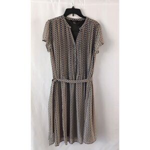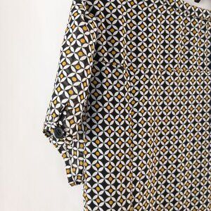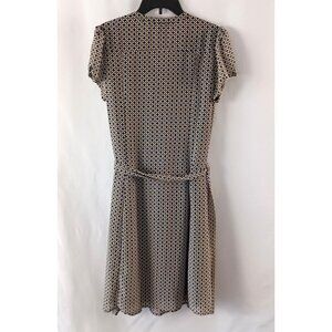 Add effortless style to your wardrobe with this Robert Louis Shift Dress in women’s size L. Featuring a chic black, white, and yellow check pattern, this versatile piece can be worn with or without the included waist tie for a relaxed or defined fit. Designed with pintuck details, short sleeves, and full lining, it offers both comfort and polish. In excellent condition with no defects, flaws, or stains—perfect for work, brunch, or casual events.