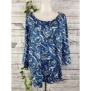 Robert Louis Tunic Top Plus size 1X Blue White Stretch Tropical Modest Casual
