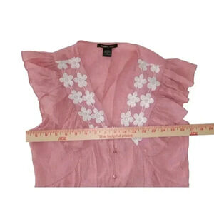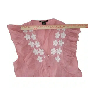 Robert Louis Women's Pink Ruffle Foral Button Down Top size Small