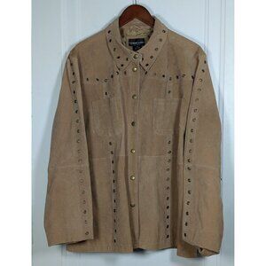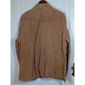 Robert Louis Womens Tan Brown 100% Suede Leather Jacket Size 2XL Grommets Snap Up Southwest. Measures approximately 25" armpit to armpit and 28" in length down the middle of the back