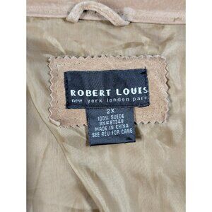 Robert Louis Womens Tan Brown 100% Suede Leather Jacket Size 2XL Grommets Snap
