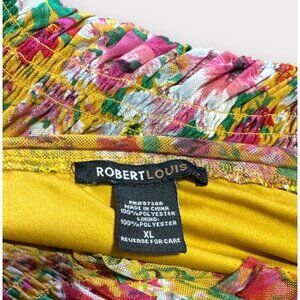 Embrace your inner free spirit with this gorgeous Robert Louis maxi dress in size extra large! This stunning dress features a beautiful yellow base adorned with a vibrant and intricate floral print in shades of red, pink, and green.