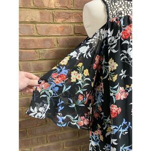 Robert Louis Black Floral Cold Shoulder Bell Sleeve Dress Size Large NWT