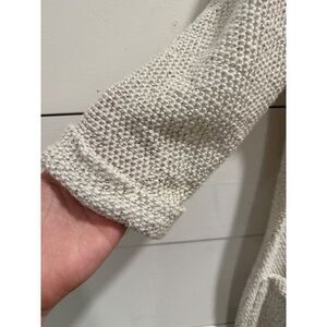 • Knit Material, 2 Front Pockets, Rolled Sleeves, Decorative Buttons Down the Back, Approximate Measurements: Pit to pit- 20 inches across; Length- 37.5 inches