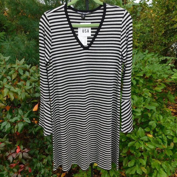 Robert Michaels Soft & Stretchy Striped V-Neck Bell-Sleeve Dress NWT