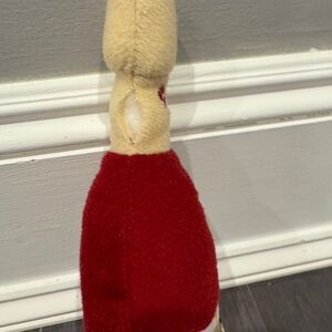 Celebrate the holidays with the plush toy. This charming red and cream toy adds a festive touch to your home decor.