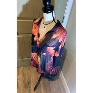 New without tags ROBERT RODRIGUEZ Etched Floral Print Chiffon, Sheer Blouse, size Large. $89