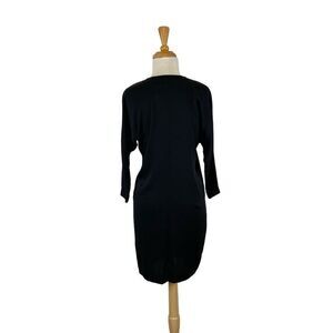 Robert Rodriguez 6 S Black Silk Dress Pencil Midi Y2K Dolman 3/4 Sleeves Evening