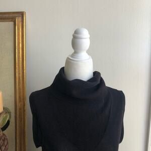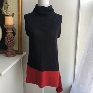 In good preowned condition. Has a cute cowl/turtleneck. Asymmetric hem. Colorblocked black and red/orange.