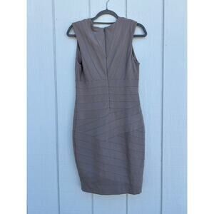 Robert Rodriguez Beige Bodycon V Neck Cross Chest Dress, Size 6