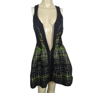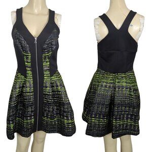 Robert Rodriguez Black Green Dress size 6 Grid print Jacquard Zip Front Mini