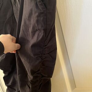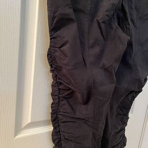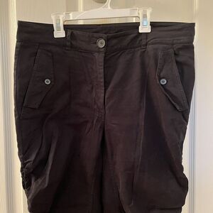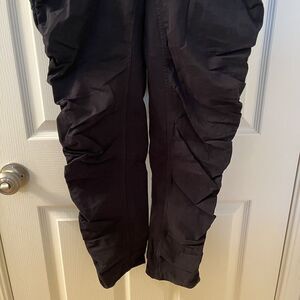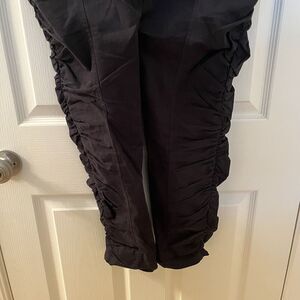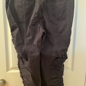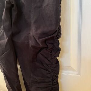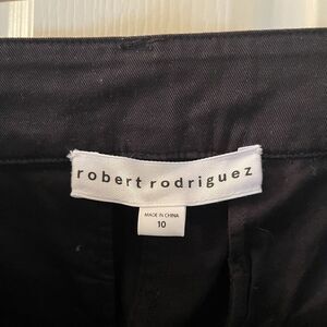 Robert Rodriguez Black Ruched Stretch Cotton Pants Slim Fit Women's Size 10. Were worn, washed, and put away, so they are wrinkled. Some wash wear/fade to the black material. Please see the pictures. Still have a ton of life left and