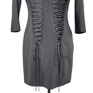 Robert Rodriguez Black fitted Bustier Style Dress w/Double Row Satin Laces Sz 4 although dress size reads 8 Runs small- see measurements