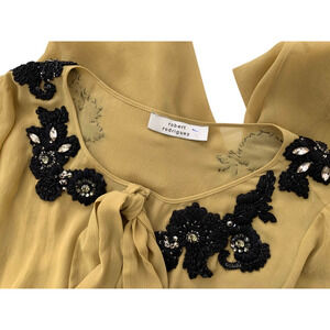 Robert Rodriguez Blouse Embellished Beaded Chiffon Tie Neck Top Size Small