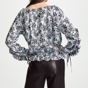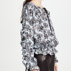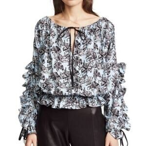 Robert Rodriguez Blue Floral Silk Ruffle Blouse