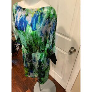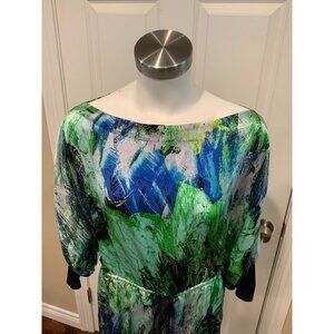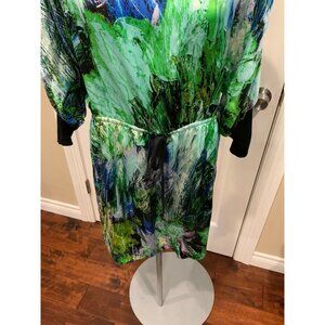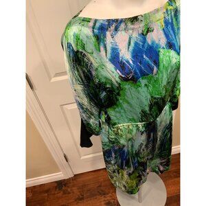 Robert Rodriguez Blue/Green Splatter Print Blouson Silk Dress, Size 8