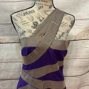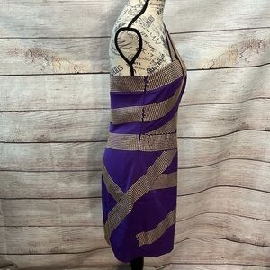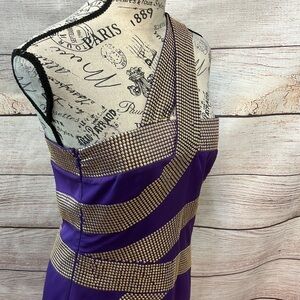 Robert Rodriguez Bodycon Bandage Dress Purple & Gold Studded One Shoulder Size 6