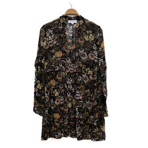 Robert Rodriguez Floral Tired Ruffle Silk Dress S Black Sheer Boho Whimsygoth