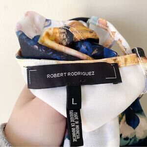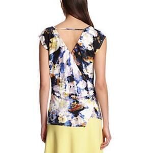 Robert Rodriguez | Francine Blouse Top Watercolor Floral Drape Neckline Large