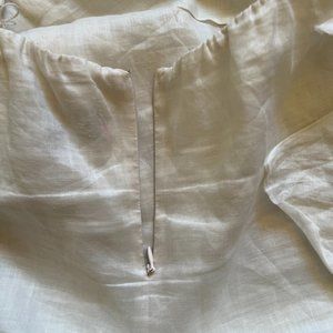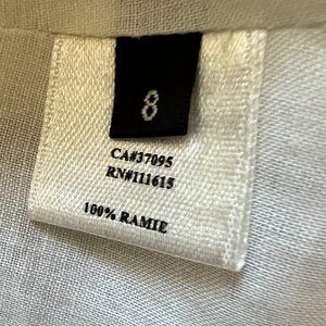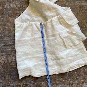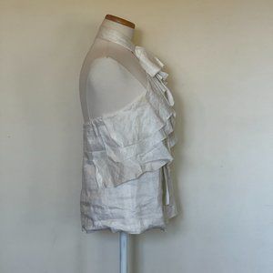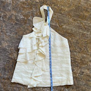 Robert Rodriguez, Ivory Linen ruffle top with halter neck closure and zipper back. Sits nicely at waist. Derived from the ramie plant, this fabric is natural, sustainable, and (of course) super cute! Awesome with jeans or dressed up. Size 8
