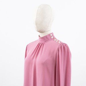 Robert Rodriguez ultra-lightweight pink silk chiffon blouse from Neimans. Adjustable ivory buttons at shoulder. Gathered bishop long sleeve. Mock high neck. Relaxed fit. Elegant & chic brand new w victorian retro vibe. Perf for brunch, work, holiday parties!