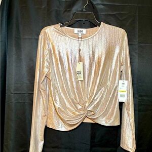 Robert Rodriguez NEO Twist Front Top Sz Medium Gold Metallic Long Sleeve NEW