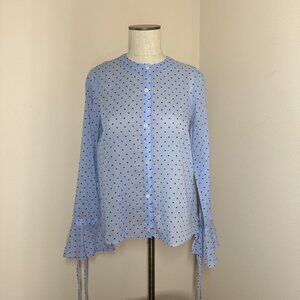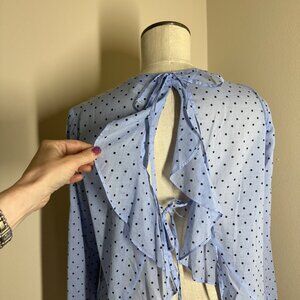 Robert Rodriguez Polka Dot Open Back Top Womens Size 6 Ruffle Cuff Feminine Blue