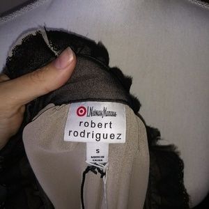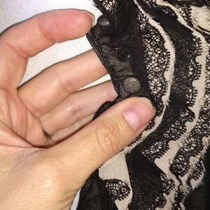 - Beautiful, heavily ruffled black and tan sleeveless top.