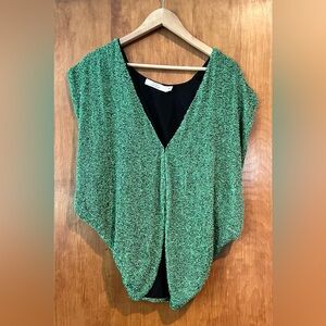 Loose Open Front Sequin Silk Green Cardigan by Designer Robert Rodriguez