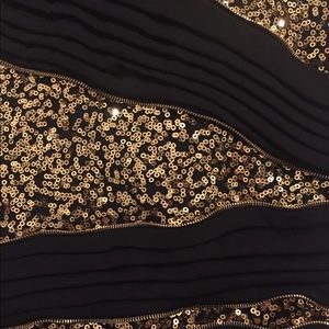 Robert Rodriguez Gold Sequin Cocktail Dress. Dress has fun gold sequin inserts and zipper detail. The bodice is ribbed for structure and fit.