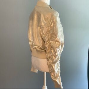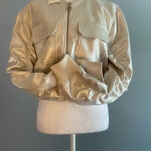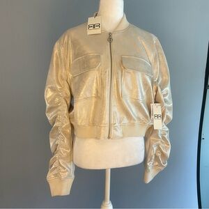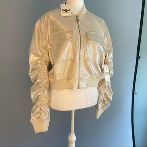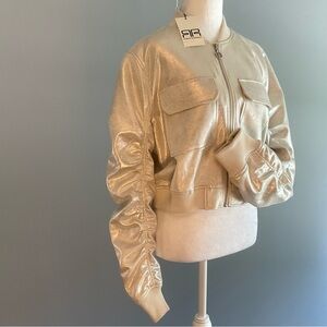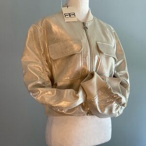 Robert Rodriguez Sz Medium Faux Leather Shimmering Champagne Bomber Jacket NWT