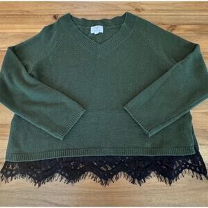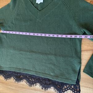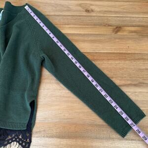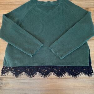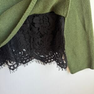 Robert Rodriguez V Neck Pullover Sweater Medium Green Black Lace Trim Wool Blend