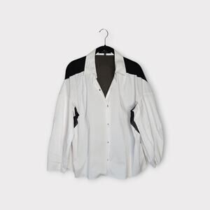 Robert Rodriguez Womens Colorblock Snap Blouse Black White 6 Contrast