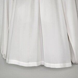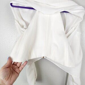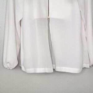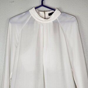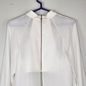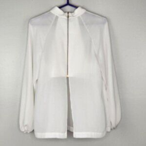 Gorgeous white chiffon high neck, long sleeve elastic cuff blouse with built-in halter bra, back zip, and back split from Robert Rodriguez!