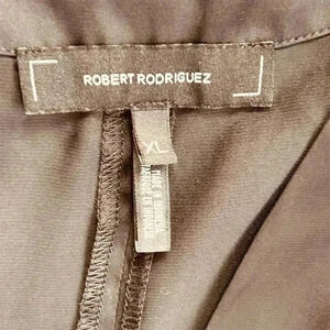 Whether you're heading to a spring cocktail party or a night out with friends, the Robert Rodriguez Women's Sleeveless V-Neck Blouse in black delivers the chic style and versatility you crave. Made from comfortable satin, this solid black blouse features a flattering V-neckline and a regular fit that complements any look. Perfect for pairing with your favorite jeans or a sleek skirt, this blouse is machine washable for easy care. Size XL. Pre-owned and in excellent condition.