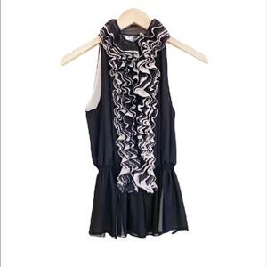 Robert Rodriguez Black Ruffle Collar High Neck Sleeveless Peplum Blouse