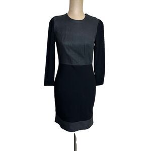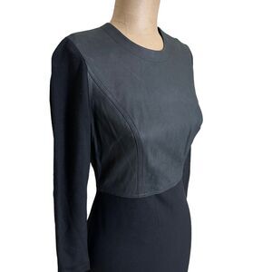 Robert Rodriguez size 2 Mini Dress Long Sleeve Stretch Jersey Black Leather Trim