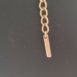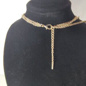 Bold gold necklace with interlocking loops. Elegant and eye-catching design. Perfect for any occasion.